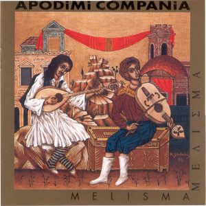 In 1991 Apodimi entered a studio once more to record its third album “Melisma” for Brunswick Recordings. This time the recording would be released on a new format, the cd. We decided to take advantage of the extra cd time available and record 18 songs and tunes. The idea was the first half would comprise Folk songs and tunes and the second half Rebetika. We also recorded a couple of new tunes the band had written at the persistence of their friend K. Karamarkos. Andy Irvine was also in town touring and we asked him to contribute a tune or two. He composed two great tunes “Take no prisoners and Old Brunswick Town, blending Irish and Greek musical elements, which we recorded and put on the album. M. Melambiotis guested on the album and the cover art was done by local artist Nick Soulakis. The sleeve article was written by our University Lecturer, Stahis Gauntlett.
